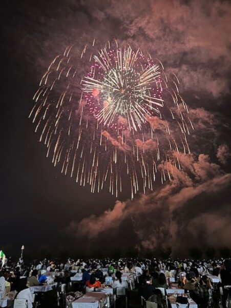 百里基地から飛行機が飛ぶサプライズショーのあと、カウントダウンから打ち上げが始まりました。近くでみる花火は迫力もあるし、キレイでした。